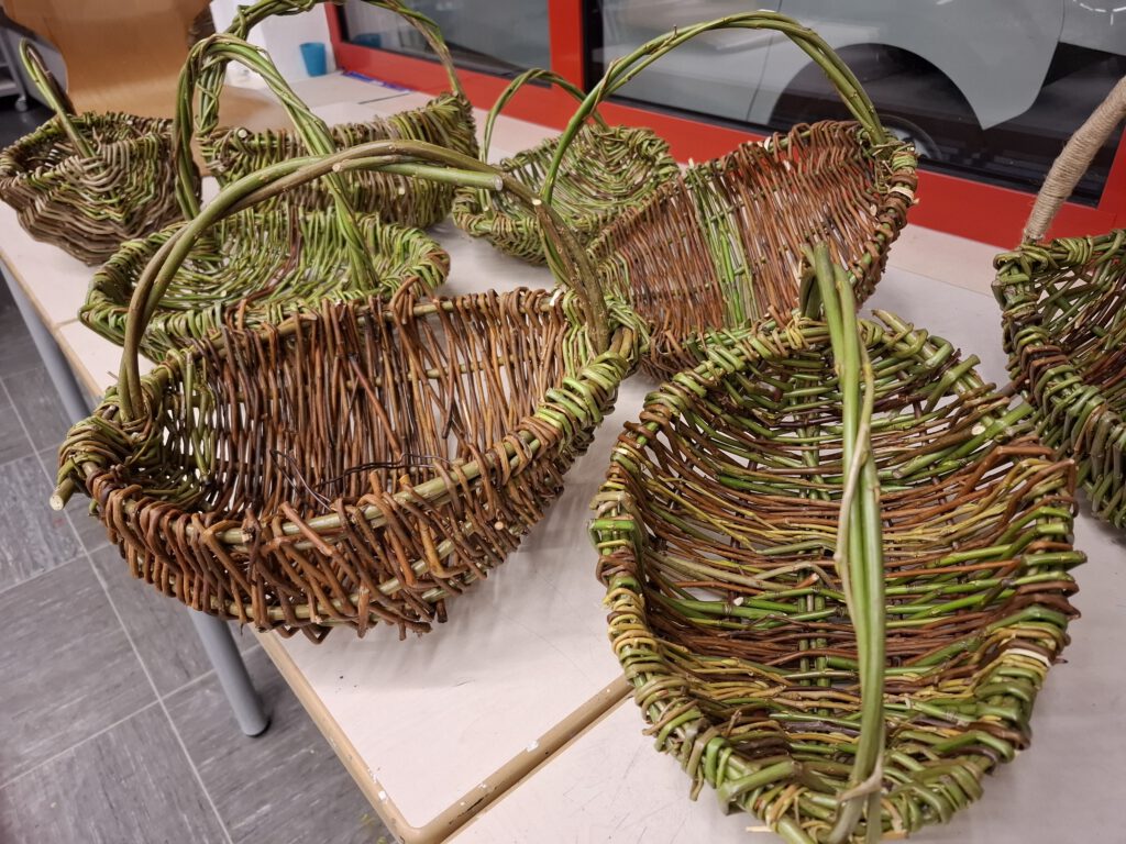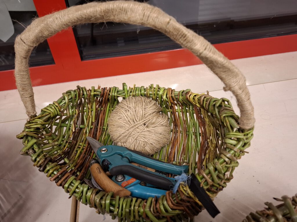Im nächsten Schritt begann die eigentliche Flechtarbeit und in diesem Stadium wurden die Teilnehmenden ruhiger und entspannten sich. Zu diesem Zeitpunkt, konnte auch ich mit einem kleinen Korb beginnen.