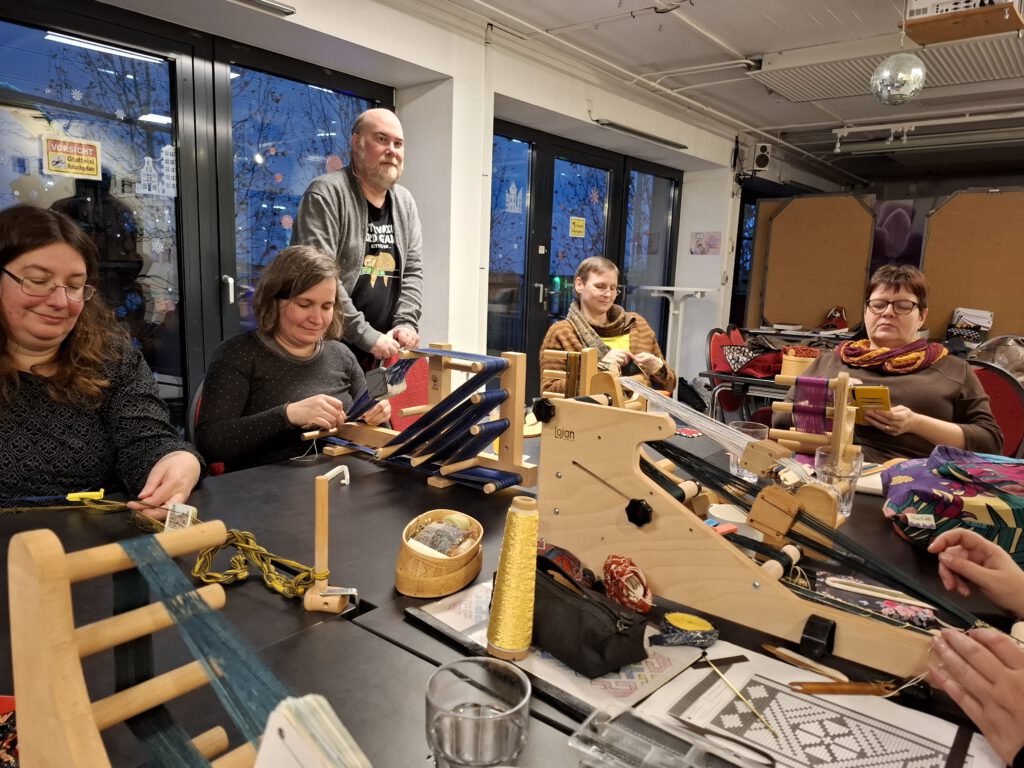So verging der Nachmittag wie im Fluge: bei den anderen Weberinnen schauen welche Projekte diese auf dem Webstuhl haben, wie welche Webrahmen funktionieren und viele Geschichten, Pläne für 2026 austauschen.