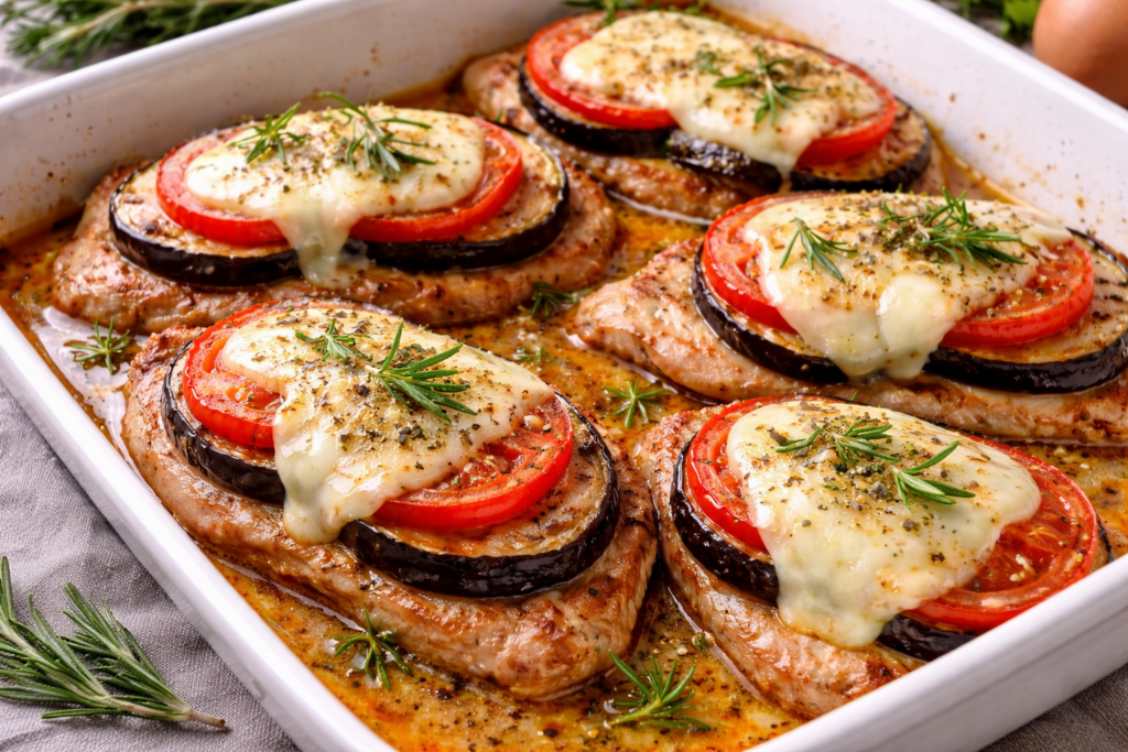 Diese Scaloppine verbinden zartes Fleisch mit gebratener Aubergine, Tomate und mild schmelzendem Fontina-Käse. Im Ofen überbacken entsteht ein aromatisches Gericht, das einfach aufgebaut ist und dennoch viel Geschmack entwickelt – ideal als kräftiger Hauptgang eines Menüs.