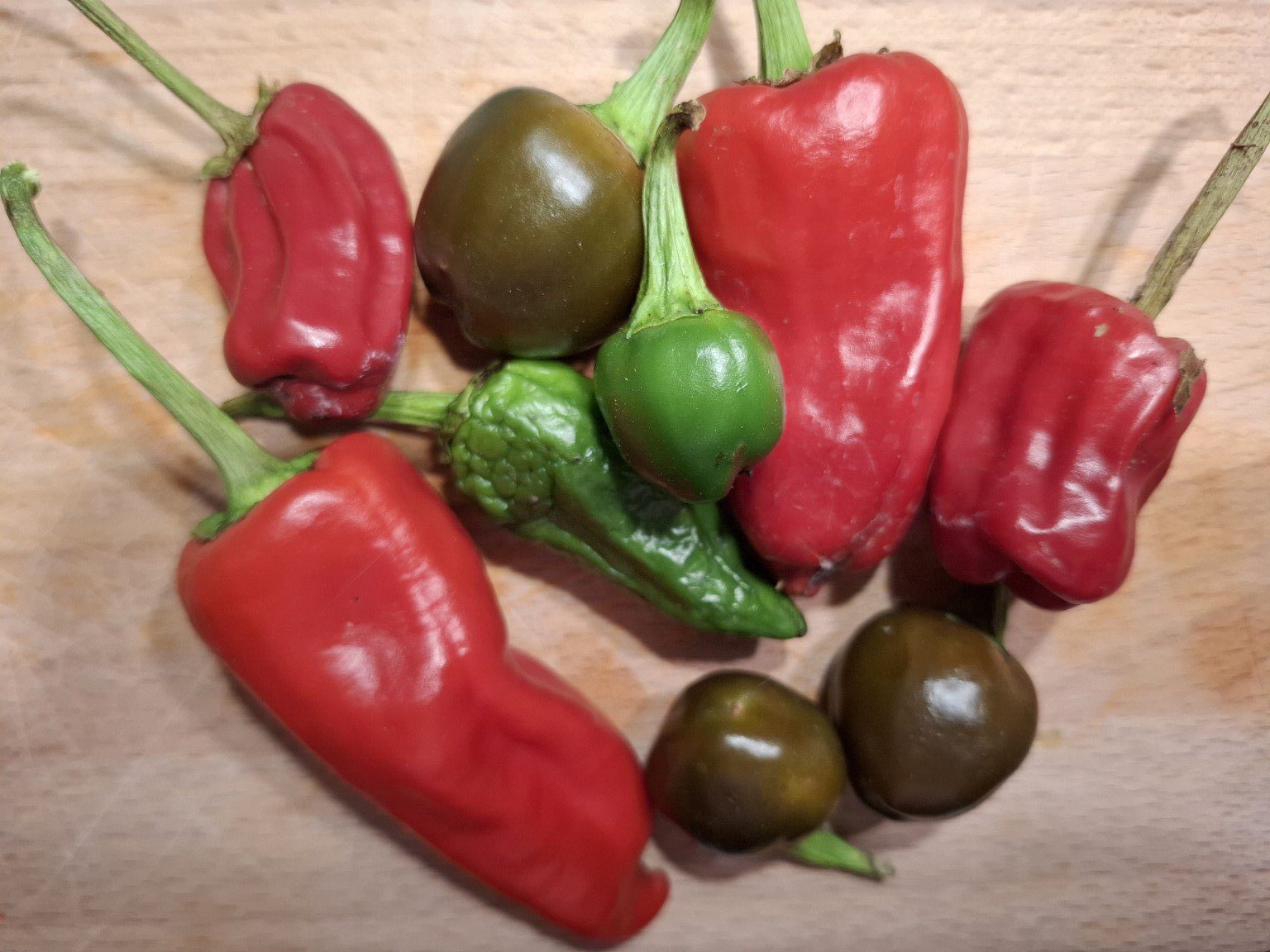 Diese Vielfalt ergibt später das besondere Aroma. Unter anderem waren die folgenden Chili/Paprika dabei: