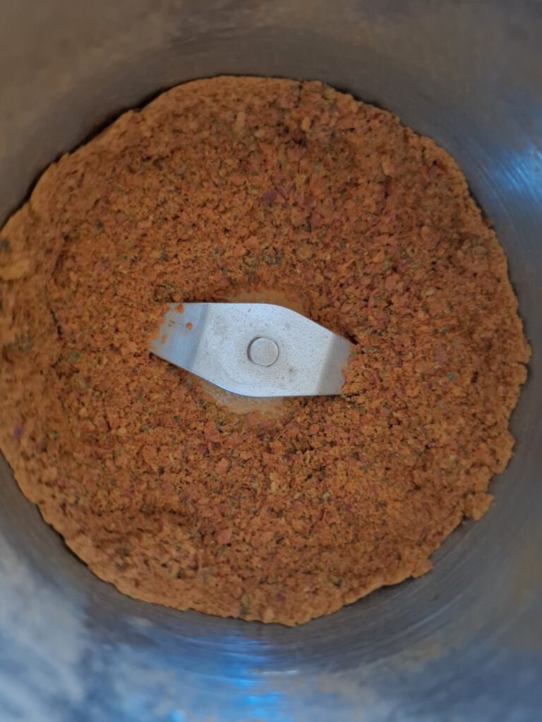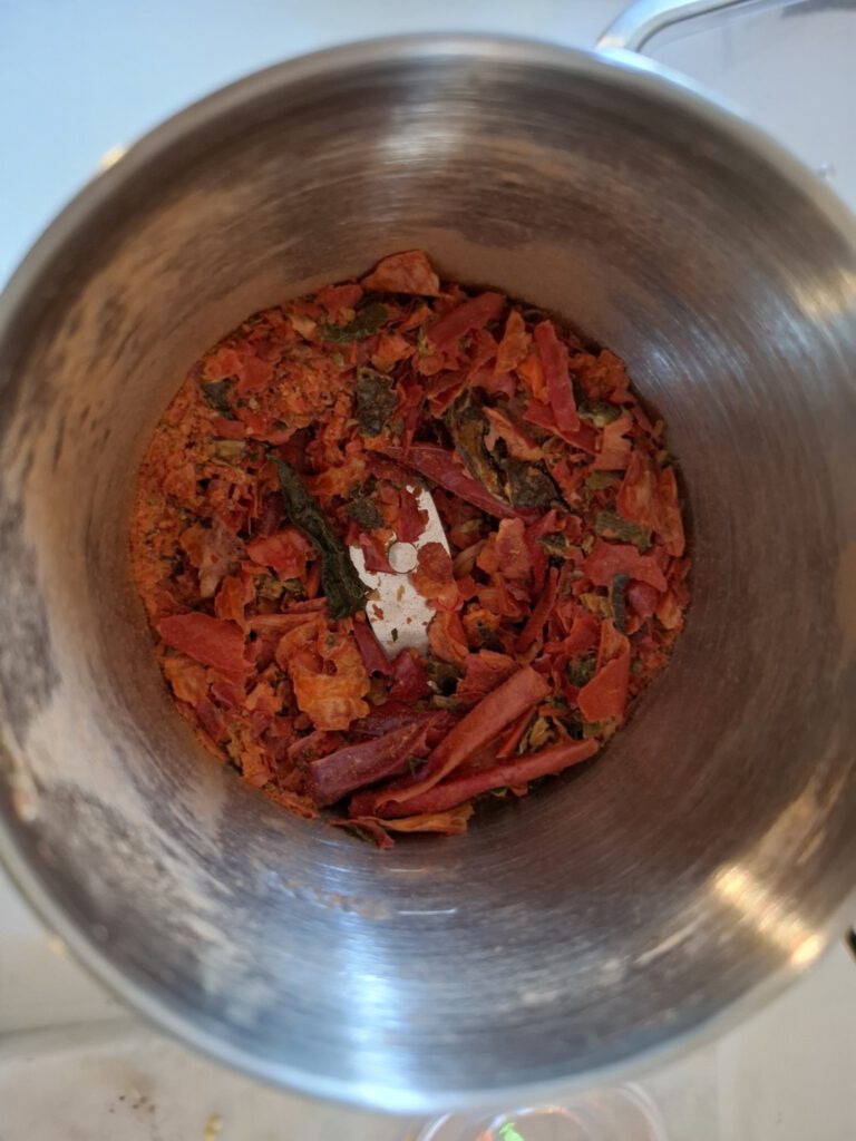 Ich habe die gedörrten Stücke direkt im Mahlgerät fein vermahlen.