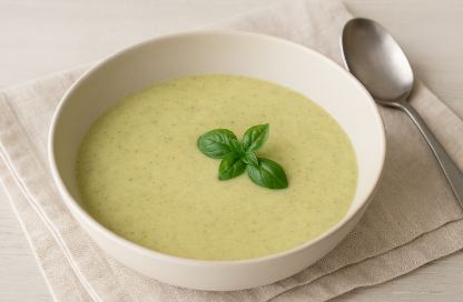 Diese feine Zucchinicreme ist eine elegante, dennoch unkomplizierte Suppe. Schalotten, Zucchini und Mascarpone verbinden sich zu einer milden, cremigen Basis, die mit Zitrone und Gewürzen frisch abgeschmeckt wird. Ideal als leichter erster Gang oder als sommerliche Gemüsesuppe.