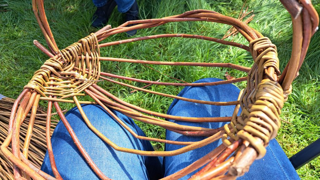 Diese Verbindung wird an beiden Seiten ausgeführt – so entsteht die Grundform des Korbes.